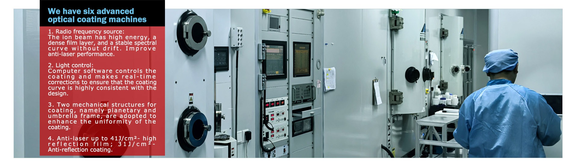 Our mission is to provide customised and quality optical products to our customers through advanced technology and high quality service. With the ultimate control of component precision and leading coating technology, we are unique in the field of optical component manufacturing.